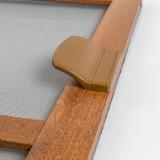 Listwa magnetyczna - wpuszczana w ramkę moskitiery na jednej, całej długości. Stosowana zamiast standardowych magnesów. Kolor listwy magnetycznej i taśmy na ramę okna - ciemny brąz.