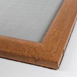 DRZWI MOSKITIEROWE  to najnowszy ruchomy system, który zabezpiecza pomieszczenie przed niepożądanymi owadami. Drzwi moskitierowe wykonane są z grubego, malowanego (nie okleinowane) aluminium, nawet w kolorystyce drewnopodobnej. Drzwi posiadają solidne aluminiowe narożniki wewnętrzne, połączone nitami w kolorze ramki. Siatka wykonana jest z włókna szklanego, przeplatana PCV w kolorze szarym. Standardowo poprzeczka jest montowana na wysokości 850 mm drzwi od dołu. Profil drzwi ma szerokość 38 mm, a poprzeczka 33 mm.